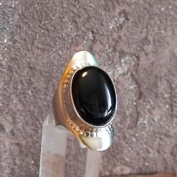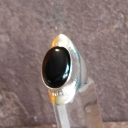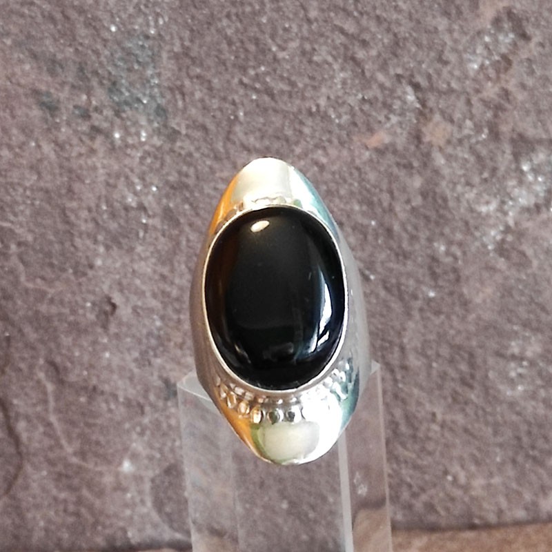 Anillo de Plata con la montura trabajada y Ónix pulido.