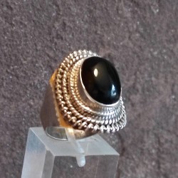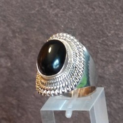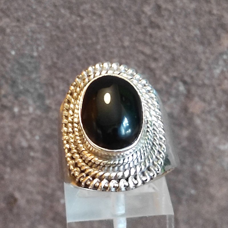 Anillo de Plata con la montura trabajada y Ónix pulido.