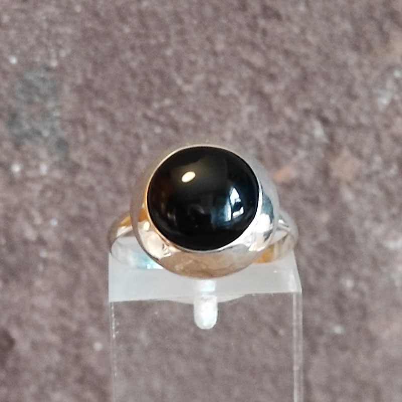 Anillo de Plata con la montura trabajada y Ónix pulido.