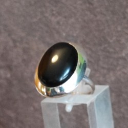 Anillo de Plata con la montura trabajada y Ónix pulido.