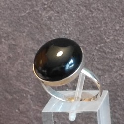 Anillo de Plata con la montura trabajada y Ónix pulido.
