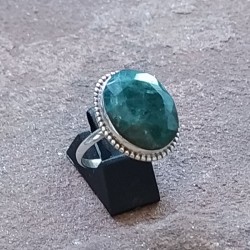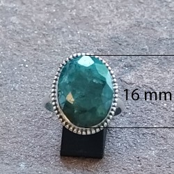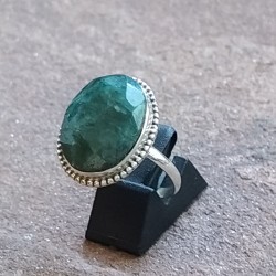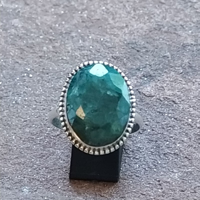 Anillo de Plata montura labrada con Esmeralda ovalada, tallada y de gran tamaño