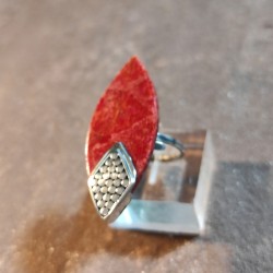 Anillo de Plata con Coral abierto