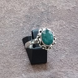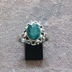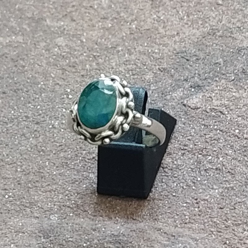 Anillo de Plata con una Esmeralda tallada, montura con filigrana