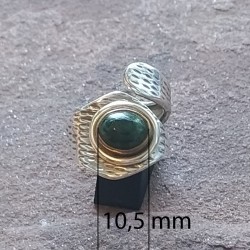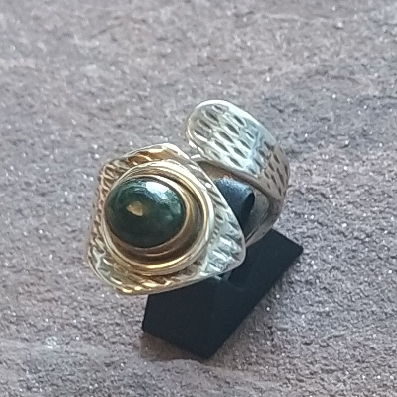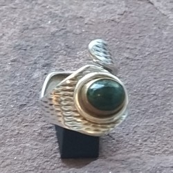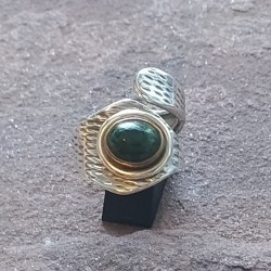 Anillo de Plata abierto con una Esmeralda en crudo con bordes de bronce