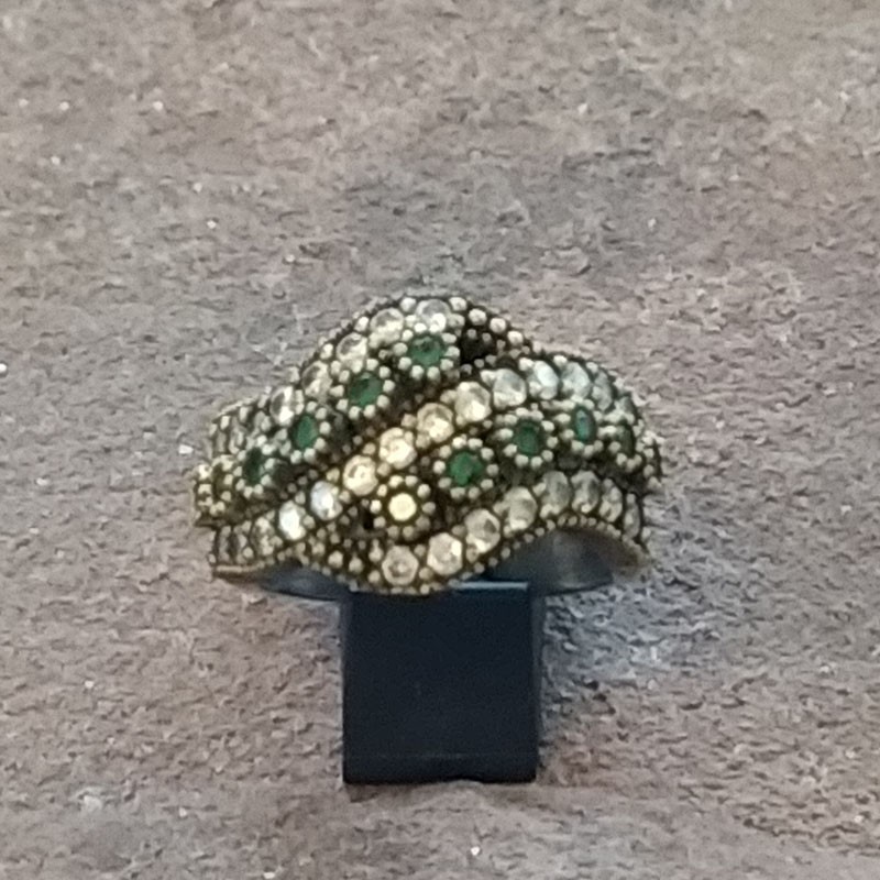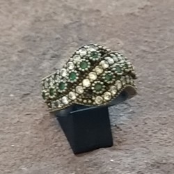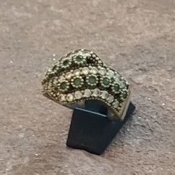 Anillo de Plata con Esmeraldas y circonitas engarzadas de estilo Otomano