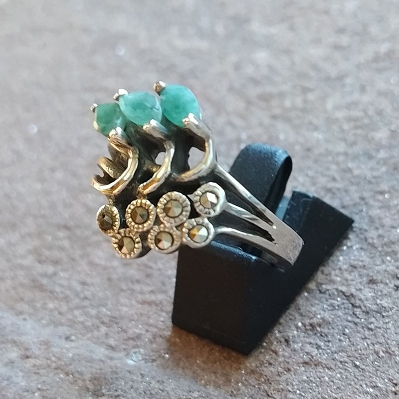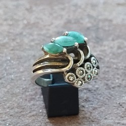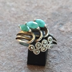 Anillo de Plata con Esmeraldas y Marquesitas talladas
