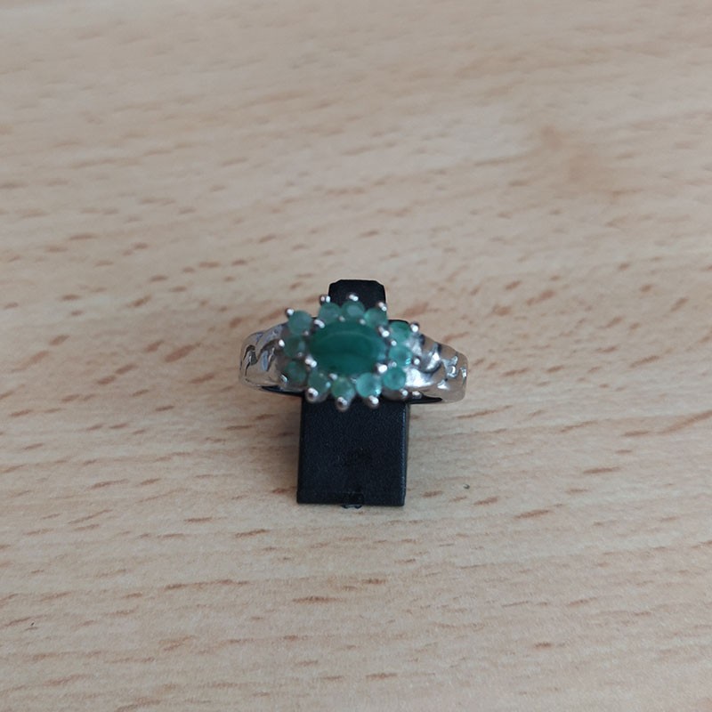 Anillo de plata con Esmeraldas talladas, formando una Flor