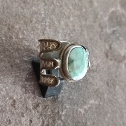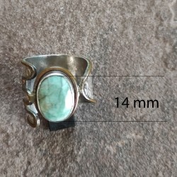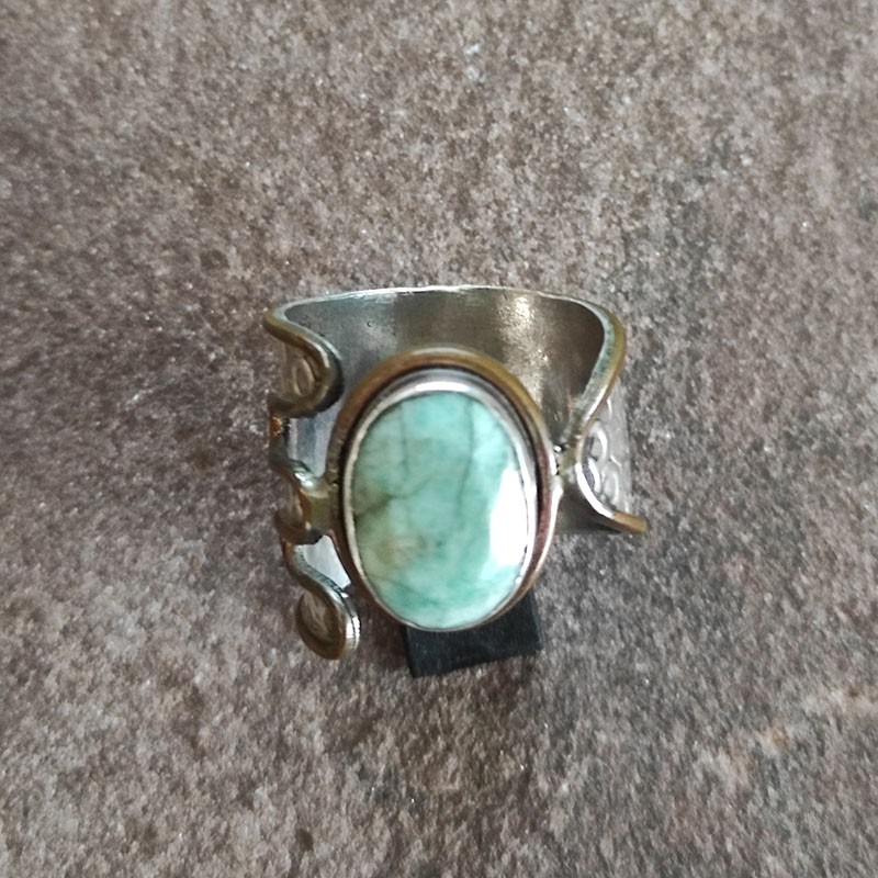 Anillo de Plata con Esmeralda Tallada, combinado con bordes de bronce.