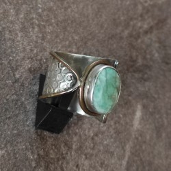 Anillo de Plata con Esmeralda de gran tamaño tallada, combinado con bordes de bronce.