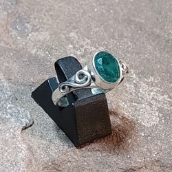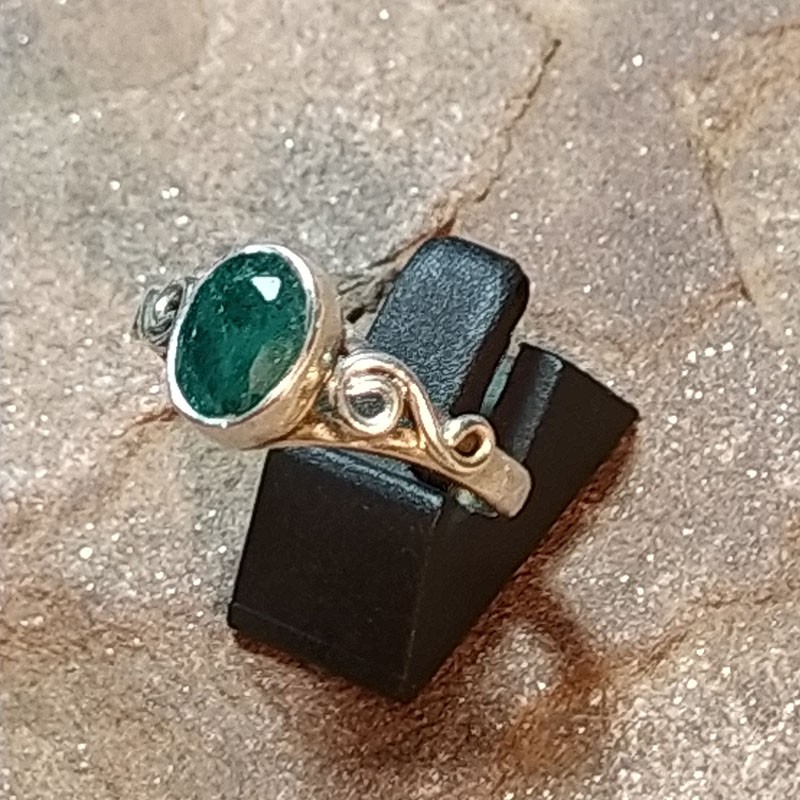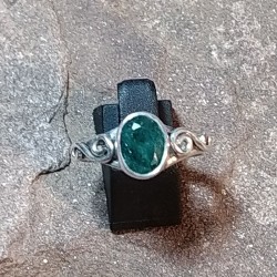 Anillo de Plata con Esmeralda tallada, montura laborada.