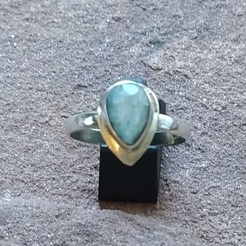 Anillo de Plata con montura en forma de gota y Esmeralda tallada