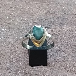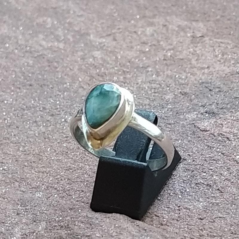Anillo de Plata con montura en forma de gota y Esmeralda tallada
