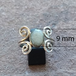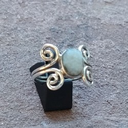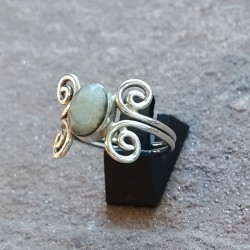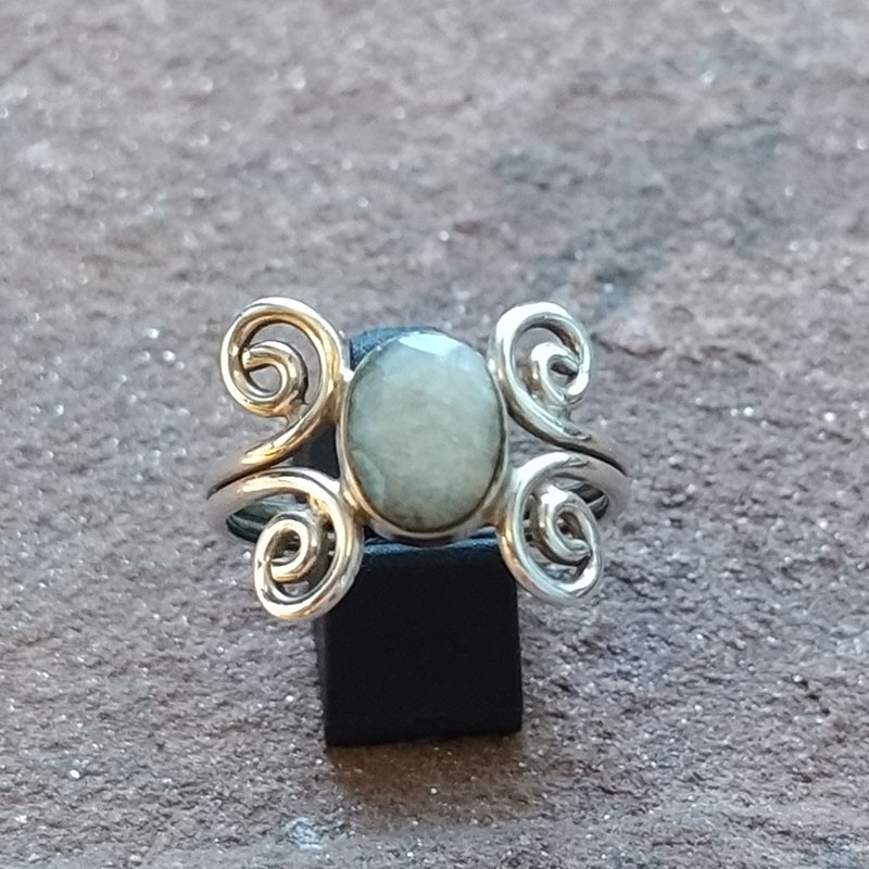 Anillo de Plata con una Esmeralda tallada, montado con espirales en los laterales.