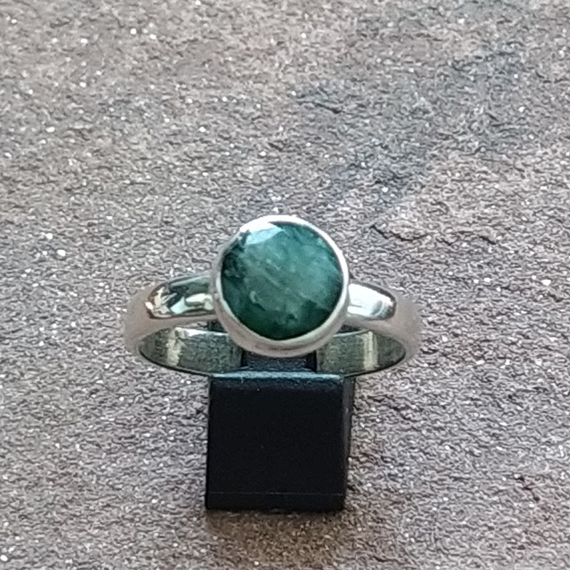 Anillo de Plata con una Esmeralda tallada