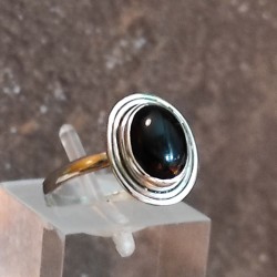 Anillo de Plata con la montura trabajada y Ónix pulido.