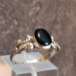 Anillo de Plata con la montura trabajada y Ónix pulido.