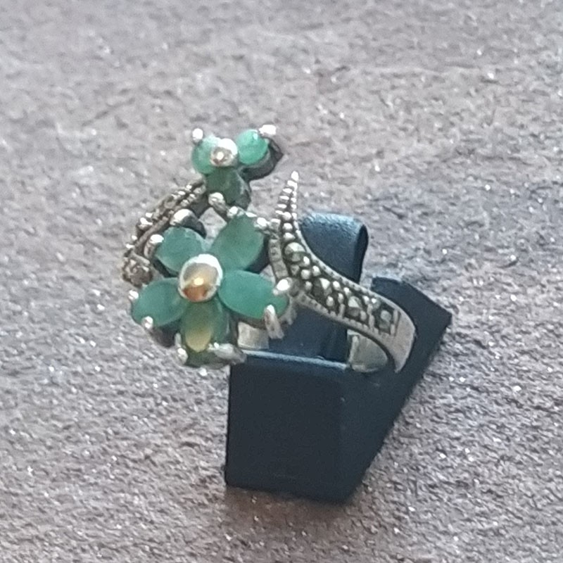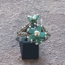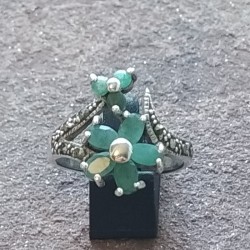 Anillo de Plata con Esmeraldas talladas formando 2 flores