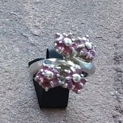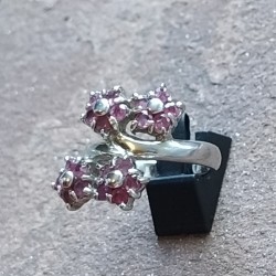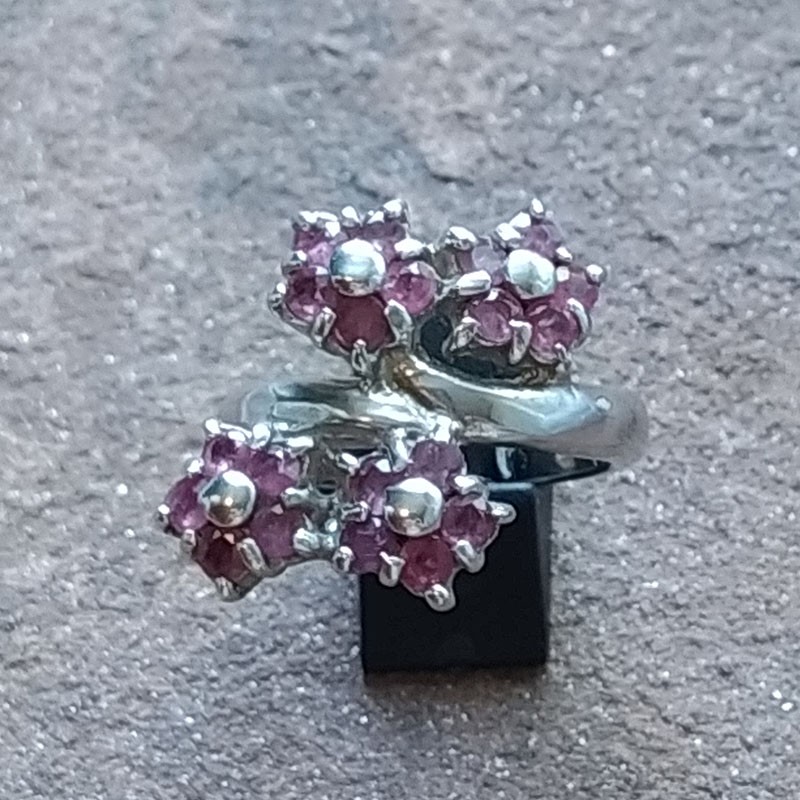 Anillo de Plata con varios Rubíes tallados formando cuatro flores.