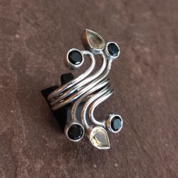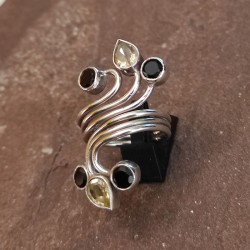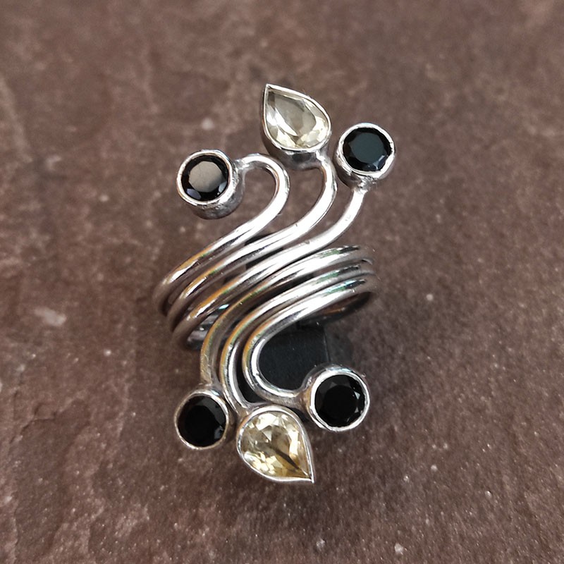 Anillo de Plata con Citrino y Ónix negro