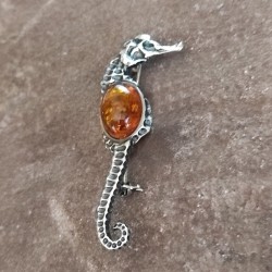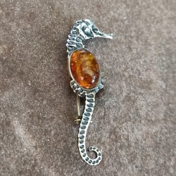 Broche de Plata, mujer con Ámbar de color verde, miel y limón