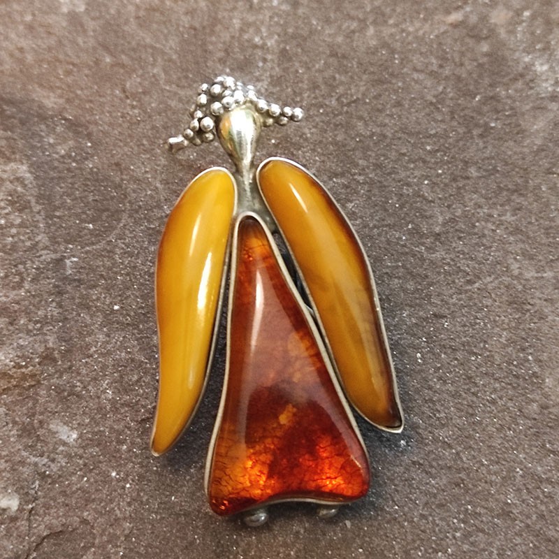 Broche o Colgante de Plata con Ámbar, en dos colores.