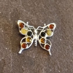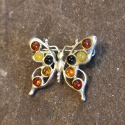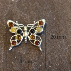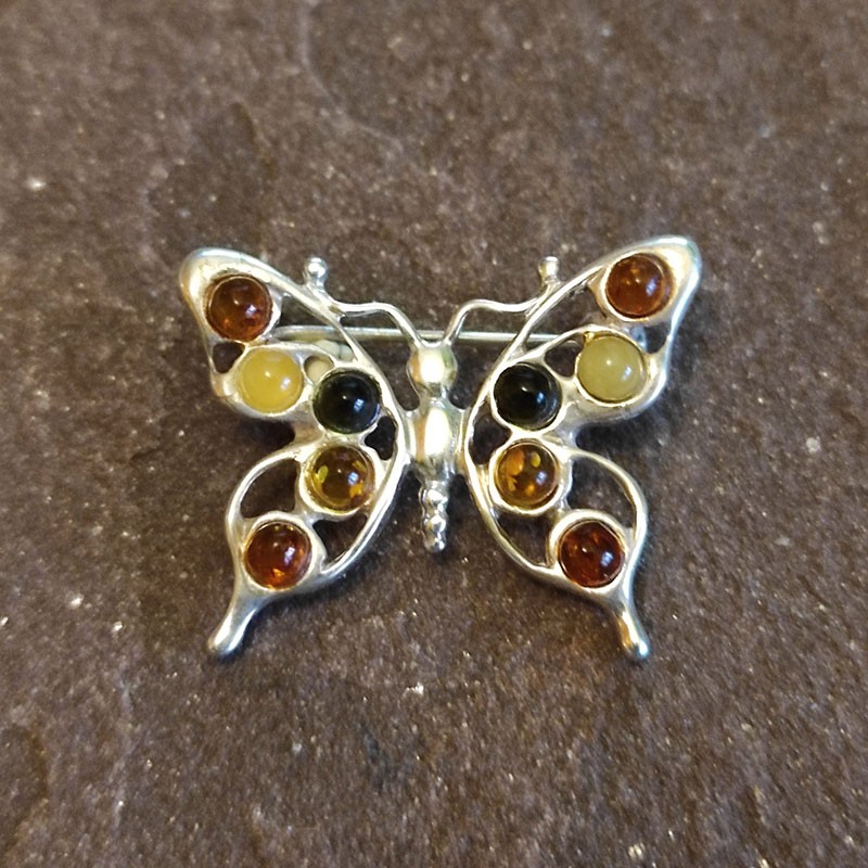 Broche de Plata, mariposa con Ámbar de color verde, leche, miel y limón