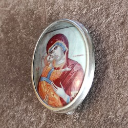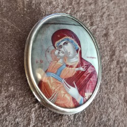 Broche de Plata lisa victoriano con imagen gregoriana