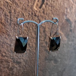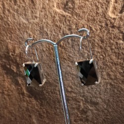 Pendientes de Plata con Circón tallado negro y ganchos largos fijos