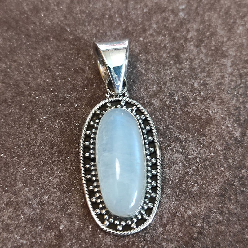 Colgante de Plata Labrada con Piedra Luna Ovalado