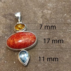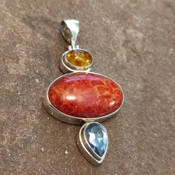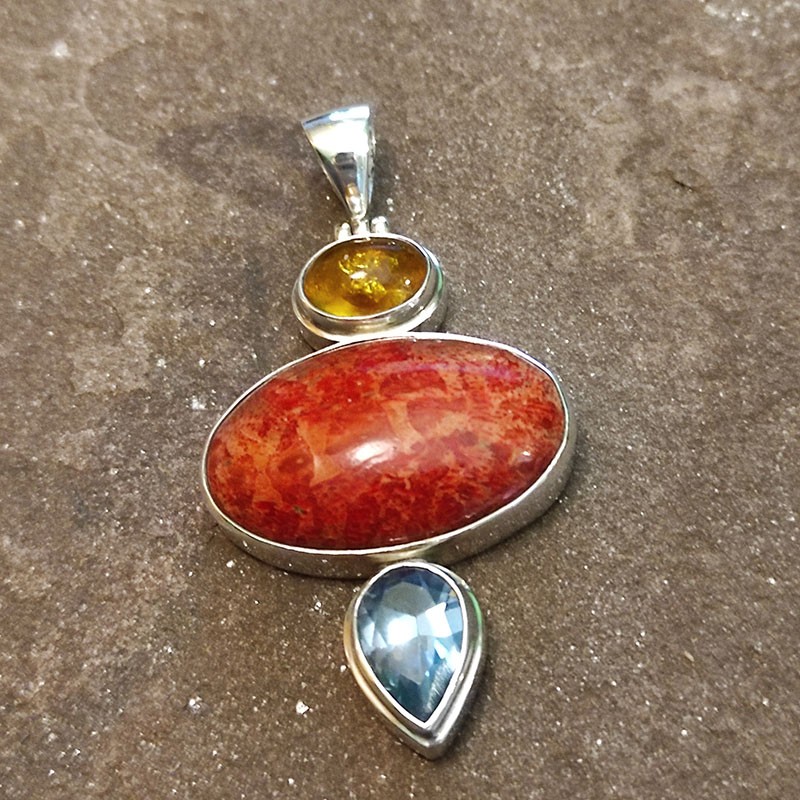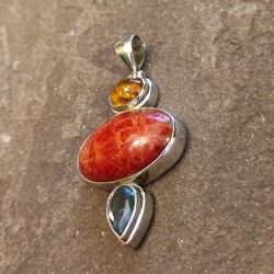 Colgante de Plata con Coral, Ámbar y Topacio azul