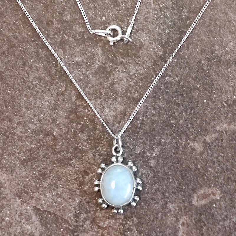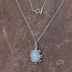 Collar de Plata Labrada con Piedra de Luna Ovalada