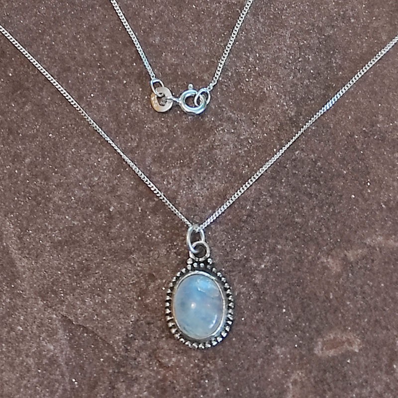 Collar de Plata Labrada con Piedra de Luna Ovalada