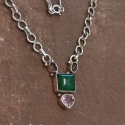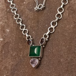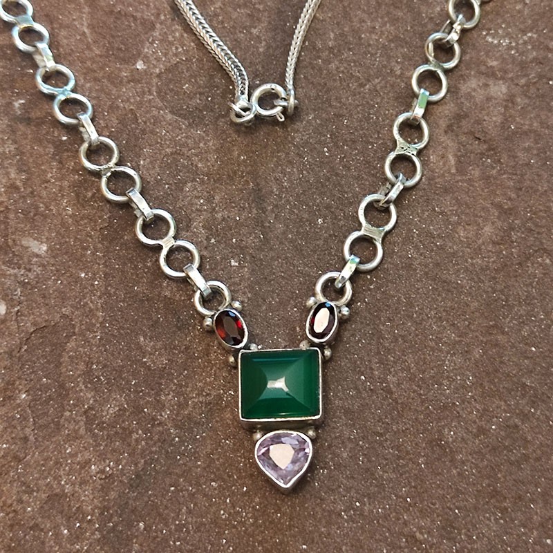 Collar de Plata con Ónix Verde, Granate y Amatista