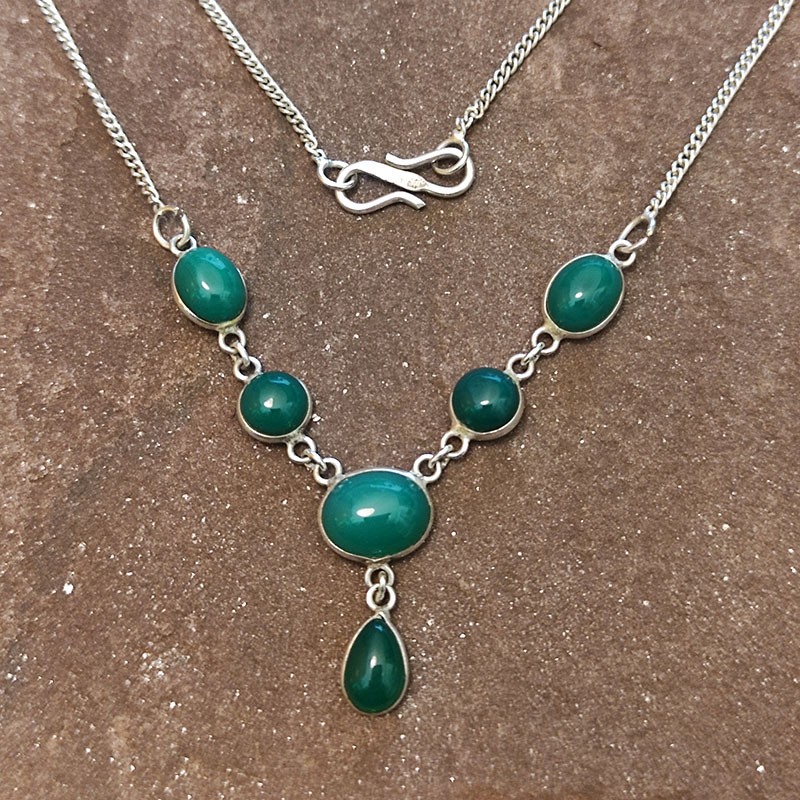 Collar de Plata con Ónix Verde, Granate y Amatista
