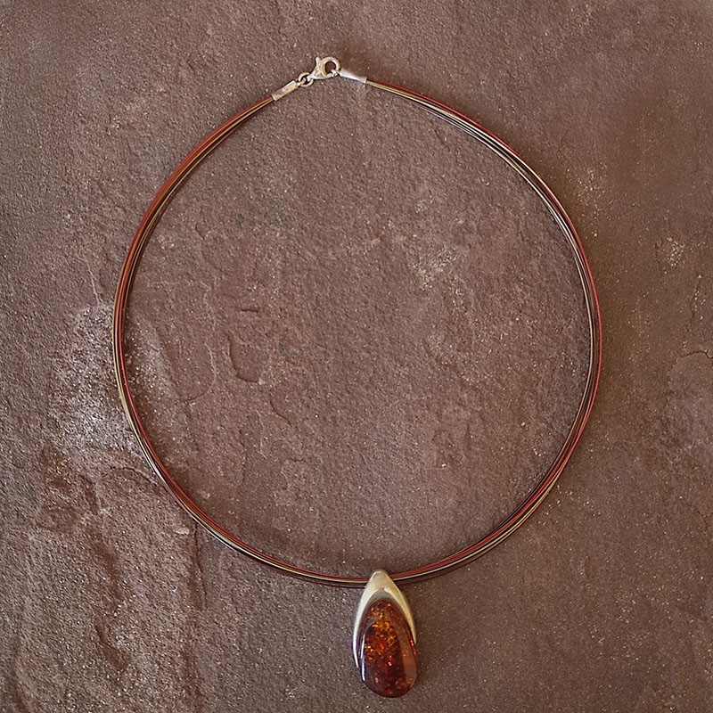 Collar con cierre de Plata y colgante de Ámbar
