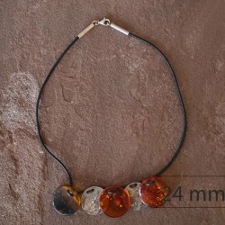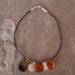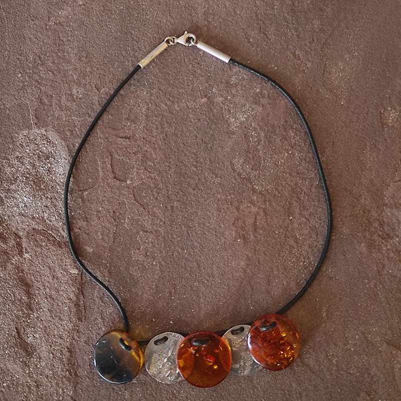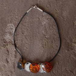 Collar de piel con cierre de Plata, dos piezas de Plata y tres piezas de Ámbar con incrustaciones muy bonitos