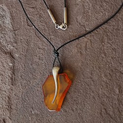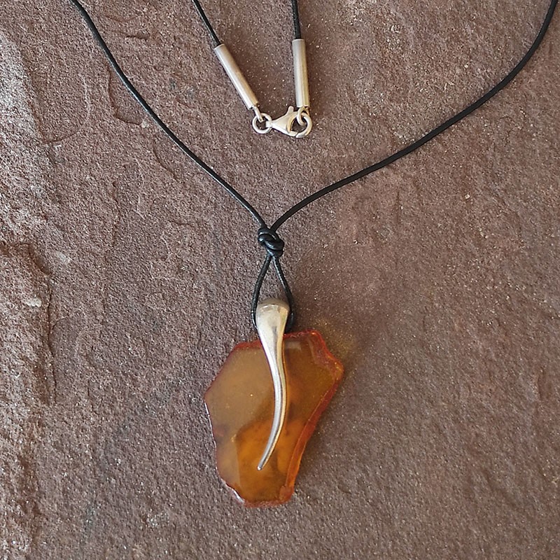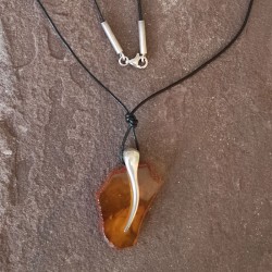 Collar de piel con cierre de Plata y un Colgante de Ámbar