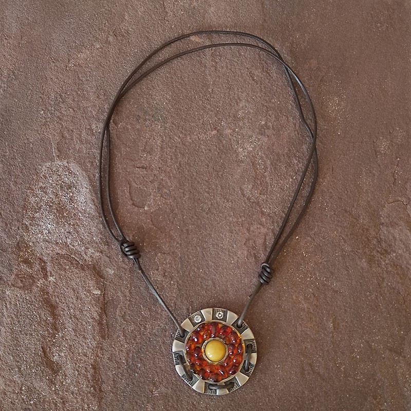 Collar de piel extensible, un Colgante de Plata con Ámbar y Circonita