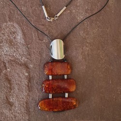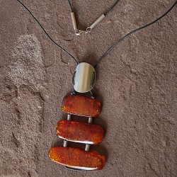 Collar de piel con cierre de Plata y un colgante de varias piezas de Ámbar y Plata