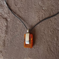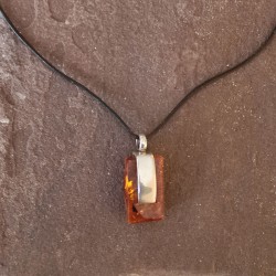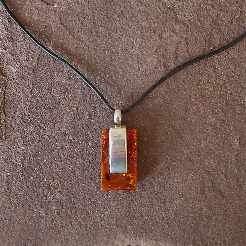 Collar de piel con cierre de Plata y un Colgante de Ámbar