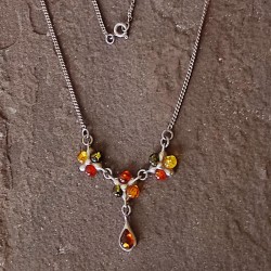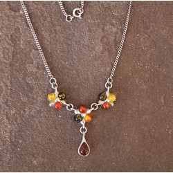 Collar de Plata con Colgante combinado de Plata y varias piezas de Ámbar