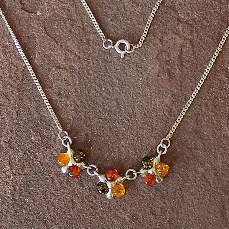 Collar de Plata con Colgante combinado de Plata y varias piezas de Ámbar