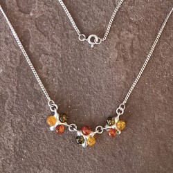 Collar de Plata con Colgante combinado de Plata y varias piezas de Ámbar y colores