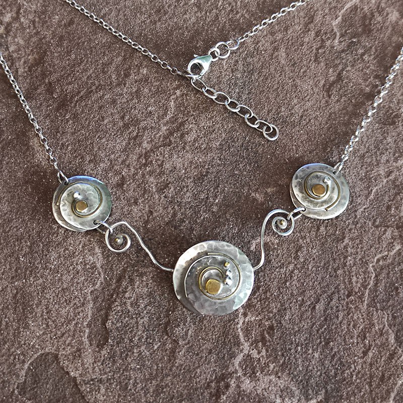 Collar de Plata lisa martillado y combinado con bronce