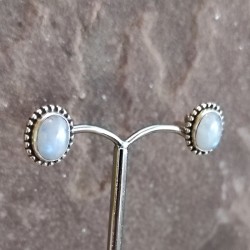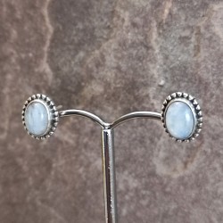 Pendientes Botón de Plata con Piedra Luna Ovalada