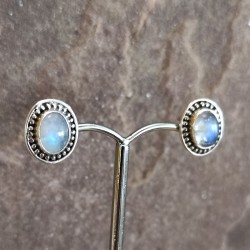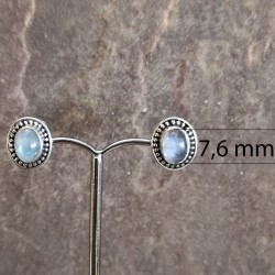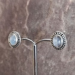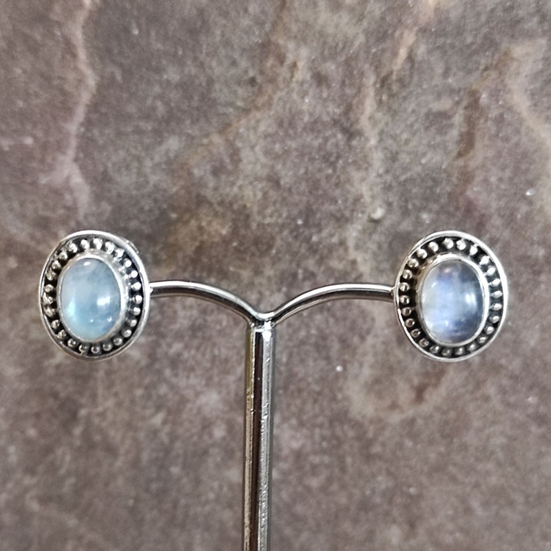 Pendientes Botón de Plata Labrado con Piedra Luna Ovalada