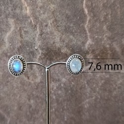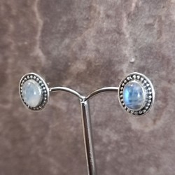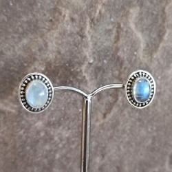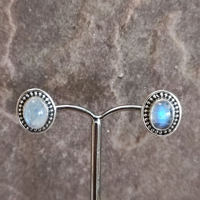 Pendientes Botón de Plata Labrado con Piedra Luna Ovalada