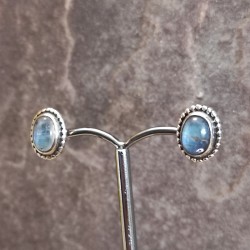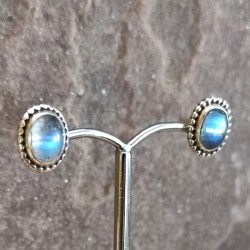 Pendientes Botón de Plata con Piedra Luna Ovalada