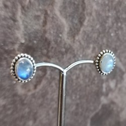 Pendientes Botón de Plata con Piedra Luna Ovalada